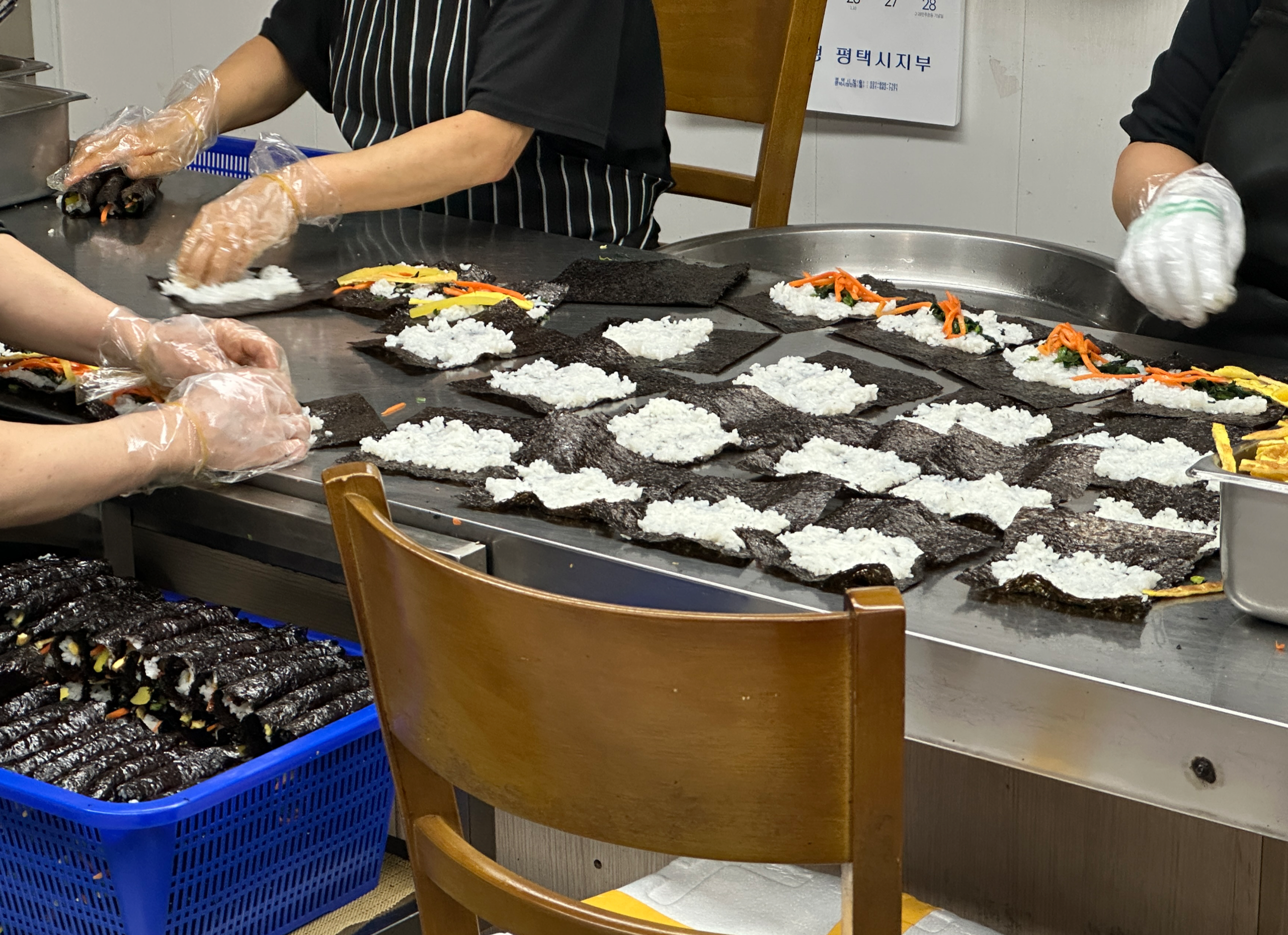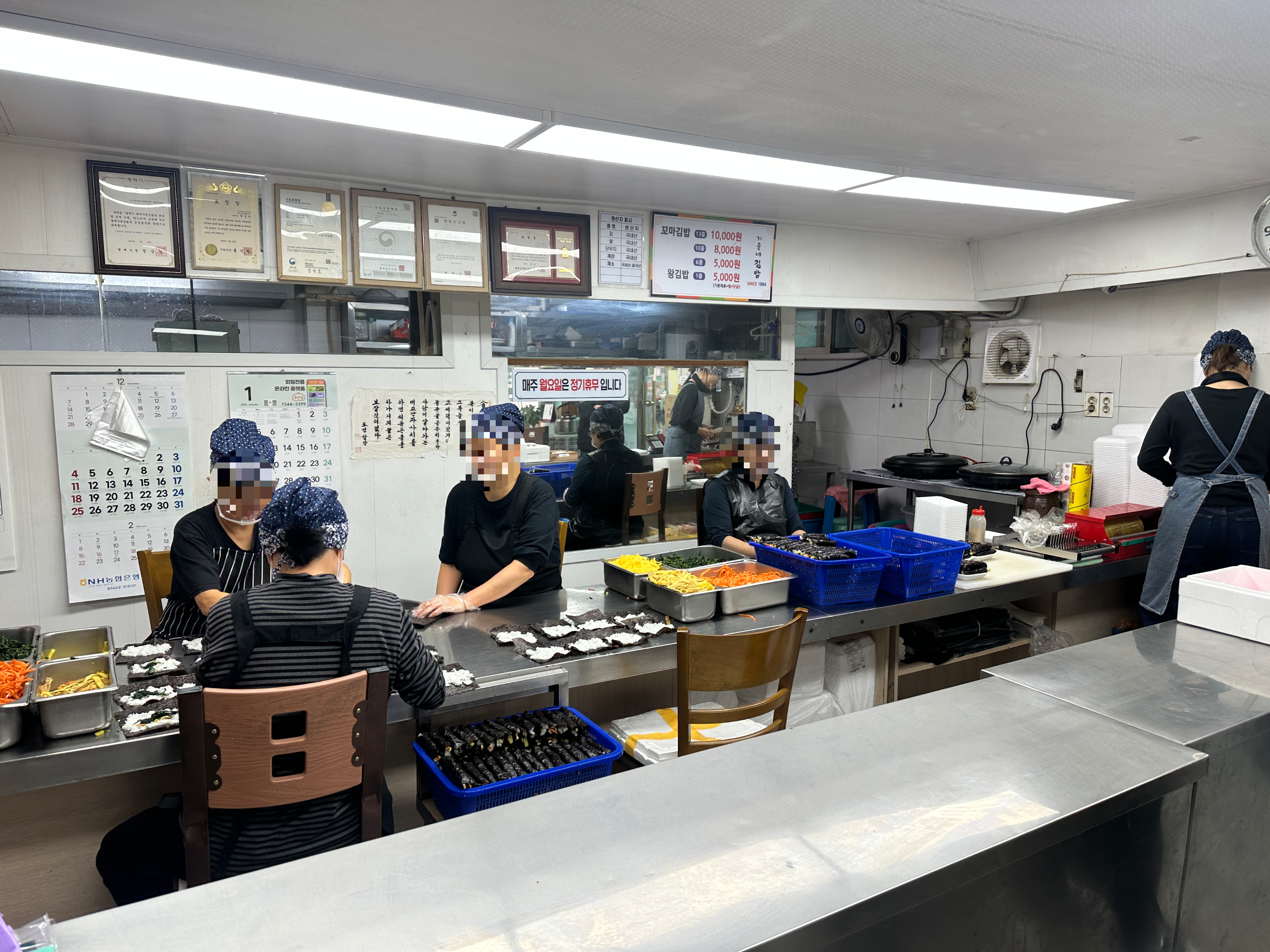 단체주문이 많은 거 같습니다. 아무말 없이 쉴새 없이 김밥을 만들고 웨이팅도 있어서 김밥사는 데 2~5분정도 걸린거 같네요. 점심시간되면 웨이팅이 더 있을꺼 같아요.